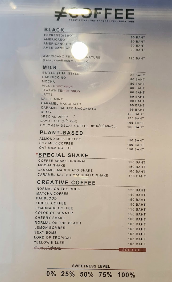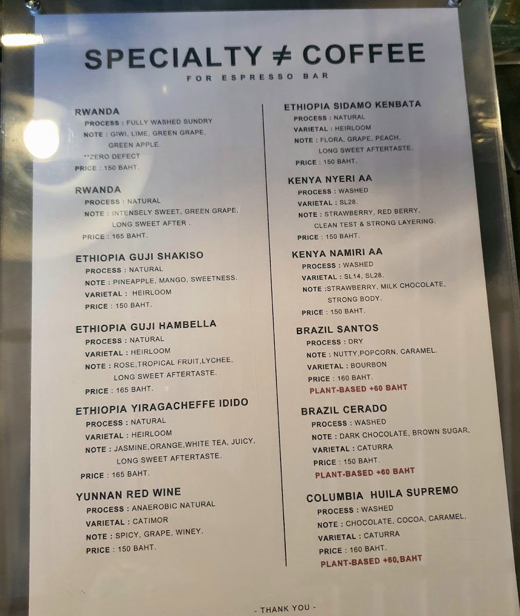 Normal specialty coffee Menu